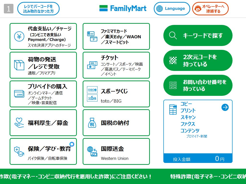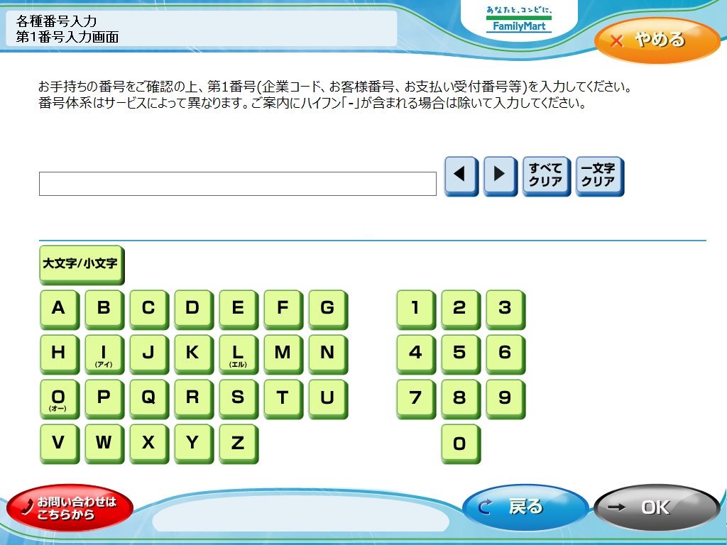 - 発行された 「第1番号(11桁)」 と 「第2番号(4桁)」 を持ってファミリーマートへ向かってください。