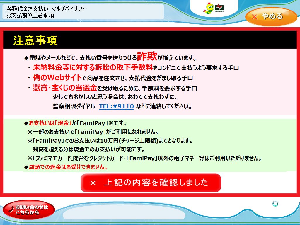 - ファミリーマートでの支払いを選択した場合、ファミリーマート以外での支払いはできません。